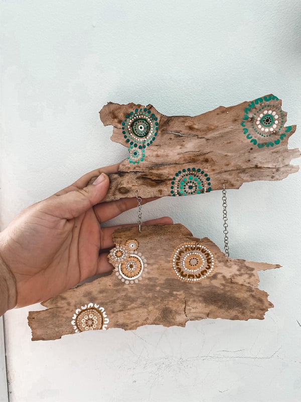 This particular piece represents the meeting of 2 tribes connected through the 1 river.